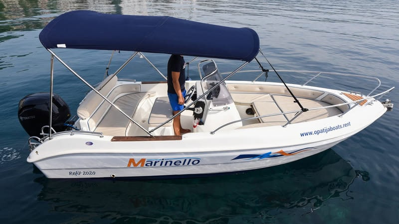 Marinello is perfect for a group of friends or small families with 2 or 3 children. The boat is registered for 7 persons but we recommend it for a maximum of 5 adults or 6 persons with smaller kids. The boat has a bimini tent that provides shadow and a nice sundeck where you can sunbathe. This boat is comfortable, not too big, but its consumption is pretty economic. If you choose to rent this speedboat you can easily get to the Islands nearby. You can explore numerous lonely and wild beaches on the Island of Cres or visit a more touristic Krk Island and grab a bite in one of its cities. A full tank it’s more than enough for that journey.